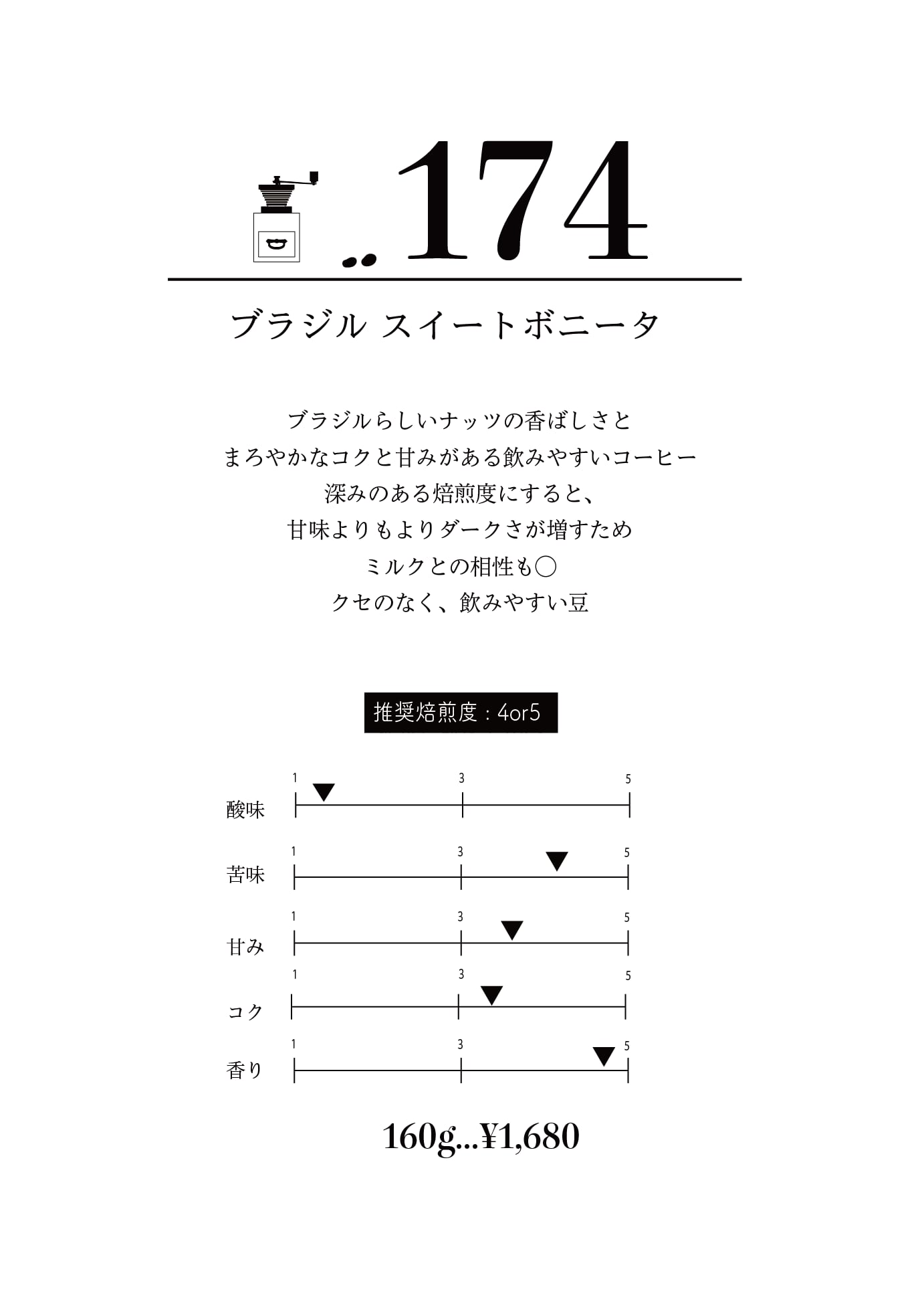 ブラジル特有のナッツ系の香りと甘味があり飲みやすいコーヒーです。